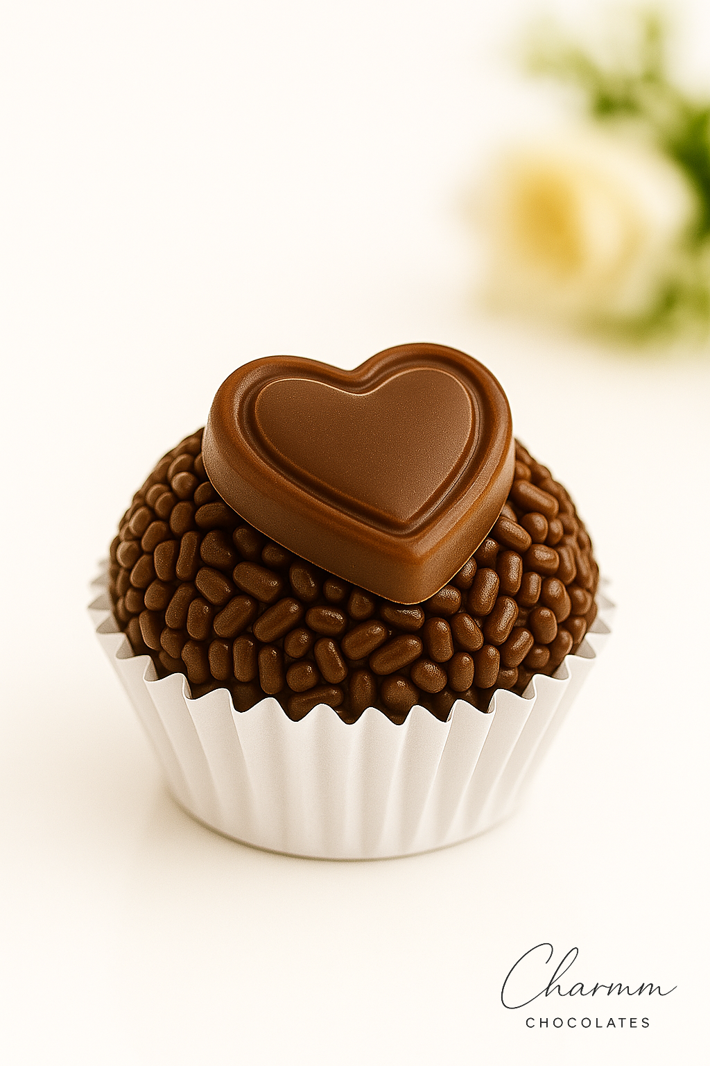 O Coração Belga é um brigadeiro artesanal de chocolate belga finalizado com um mini coração de chocolate ao leite. Uma combinação perfeita entre intensidade e carinho, ideal para momentos emocionantes e lembranças afetivas com toque visual apaixonante.